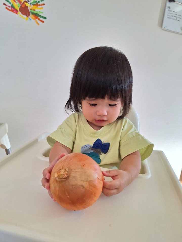 礼拝の後は、みんなで持ち寄ったお野菜や果物を触ってみました🌽