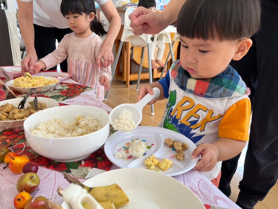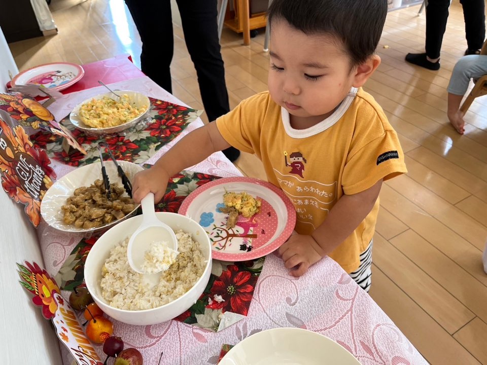 自分たちでご飯を装ってみたよ!