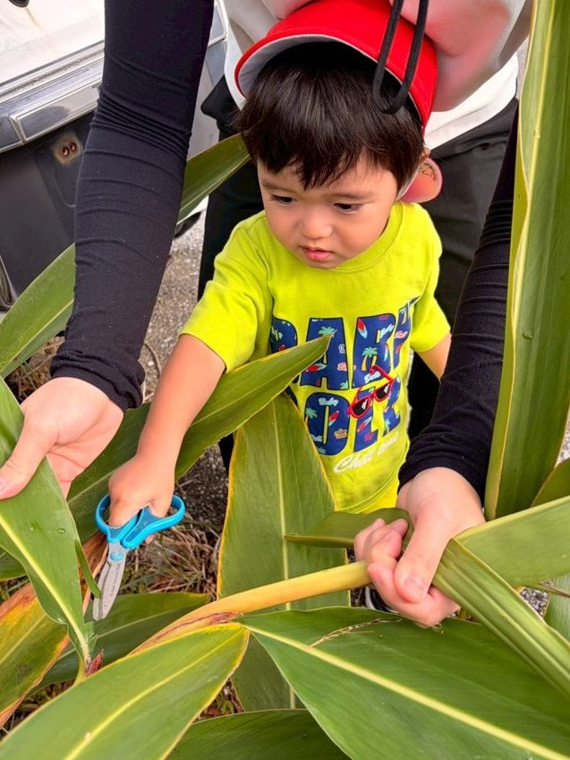 まずはサンニンの葉を収穫!