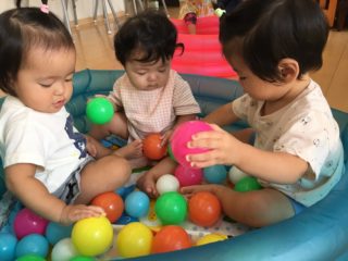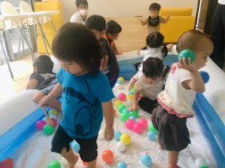 いちごクラスと一緒に ボールプールあそびをしまし…